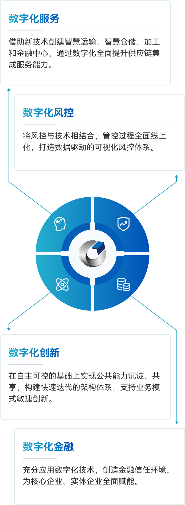 浙商中拓以“數(shù)字中拓”建設(shè)為抓手,全力推進(jìn)“管理信息化、商務(wù)電子化、產(chǎn)業(yè)互聯(lián)網(wǎng)化”,將數(shù)字化全面應(yīng)用到公司業(yè)務(wù)拓展和經(jīng)營(yíng)管理上。經(jīng)過(guò)十余年的信息化建設(shè),逐步建立了以 DSCM(ERP)、SAP、HR、CRM、PRM、WMS、TMS、OA 為主的信息化體系,有效支撐了公司的整體業(yè)務(wù)運(yùn)營(yíng)和各項(xiàng)管理制度、流程的落地,提升了管理水平和工作效率。與此同時(shí),數(shù)字化助力業(yè)務(wù)模式的快速創(chuàng)新和推廣應(yīng)用,依托新技術(shù)、新平臺(tái),打造了工業(yè)服務(wù)綜合體、物流金融等創(chuàng)新模式,通過(guò)數(shù)字賦能供應(yīng)鏈和產(chǎn)業(yè)鏈,提升供應(yīng)鏈服務(wù)效能,實(shí)現(xiàn)產(chǎn)業(yè)鏈共贏。