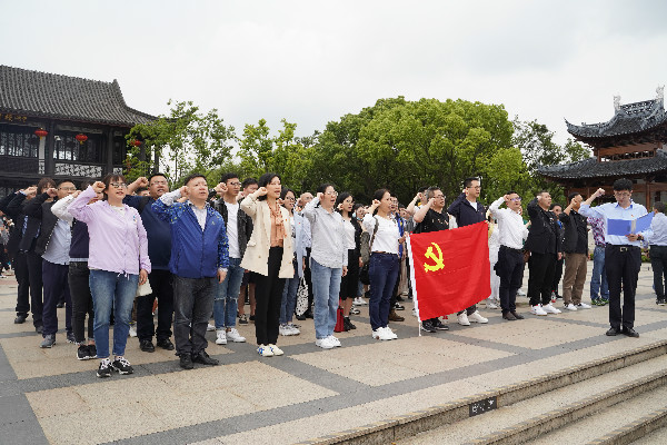 5月22日,第一批96名黨員干部迎著晨光出發(fā),經(jīng)過一個半小時的車程,抵達(dá)嘉興南湖,登上小船前往湖心島,去到那具有重要標(biāo)志意義的中國革命原點。首站便是駐足在紅船邊,靜靜聆聽“一個大黨和一條小船的故事”,100年前中共一大代表們在紅船上密切交談的場景重現(xiàn)在眼前,在這里播下了中國革命的火種,開啟了中國共產(chǎn)黨的跨世紀(jì)航程。踏上煙雨樓,董必武同志親筆題寫的對聯(lián)“煙雨樓臺革命萌生此間曾著星星火,風(fēng)云世界逢春蟄起到處皆聞殷殷雷”,依然能從中感受到共產(chǎn)黨人于風(fēng)霜雪雨中淬火成鋼的英勇。隨后在公司黨委委員梁靚的帶領(lǐng)下,全體黨員干部在望湖樓前,面向“湖心島”方向舉起右拳,莊嚴(yán)宣誓,“我志愿加入中國共產(chǎn)黨,擁護(hù)黨的綱領(lǐng),遵守黨的章程……”全體黨員的聲音交匯在一起,句句鏗鏘,聲聲入心。下午,全體黨員集中觀看《一大首聚 開天辟地》專題片,跟隨嘉興高校黨政文史專業(yè)講師、高級技師、省五星級教學(xué)名師李向東學(xué)習(xí)黨章,聆聽李向東老師講授專題黨課《精解紅船精神內(nèi)涵,詮釋黨員使命擔(dān)當(dāng)》。通過學(xué)習(xí)黨章,領(lǐng)悟紅船精神,深刻體悟使命與擔(dān)當(dāng)?shù)囊饬x,真正做到習(xí)近平總書記所說的“精神傳承、思想升華”。