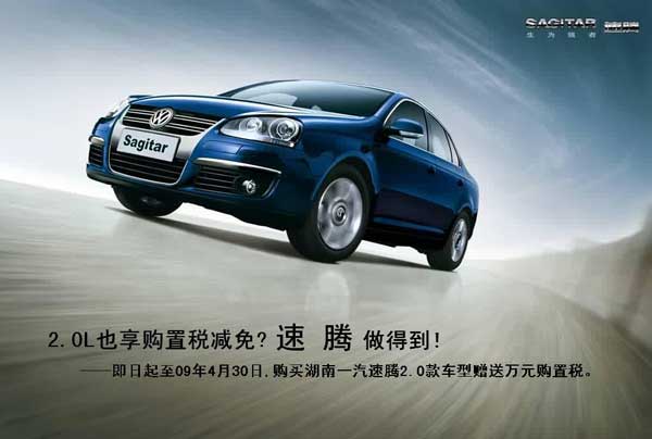 湖南一汽開展購速騰2.0L車型減免萬元購置稅活動