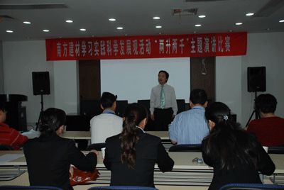 ??? 為進(jìn)一步深入學(xué)習(xí)實(shí)踐科學(xué)發(fā)展觀活動(dòng),并為浙江省物產(chǎn)集團(tuán)舉辦的演講比賽選拔參賽選手,5月20日上午,公司在總部428會(huì)議室舉辦學(xué)習(xí)實(shí)踐科學(xué)發(fā)展觀“兩升兩千”( “兩升”指“做大向做強(qiáng)升華,戰(zhàn)略引領(lǐng)向價(jià)值觀引領(lǐng)升華”, “兩千”指“千方百計(jì)開(kāi)拓市場(chǎng),千錘百煉苦練內(nèi)功”)主題演講比賽。參賽選手從不同角度深情講述身邊人身邊事,詮釋南方建材切實(shí)踐行科學(xué)發(fā)展觀的內(nèi)涵與意義,比賽現(xiàn)場(chǎng)氣氛熱烈。經(jīng)過(guò)角逐,楊吳夏獲得一等獎(jiǎng),鄧佑波、楊歡獲得二等獎(jiǎng),南方明珠酒店獲得組織獎(jiǎng)。