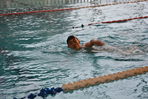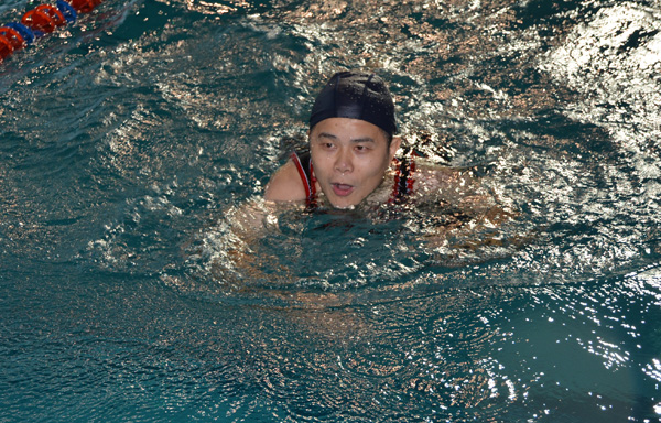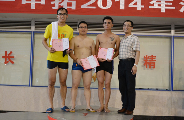 ??? 在簡(jiǎn)短的入場(chǎng)儀式結(jié)束后,工會(huì)主席潘潔預(yù)祝比賽取得圓滿成功,黨委副書記姚俊宣布比賽正式開始。比賽分為女子組50米、男子青年組100米、男子中年組100米和男女混合4×50米接力賽。在拉拉隊(duì)員們熱情洋溢的加油呼喊聲中,游泳健兒們個(gè)個(gè)奮勇爭(zhēng)先,斗志昂揚(yáng)。有的選手迅捷如“菲魚”,令人眼前一亮;有的選手雖泳技不精,卻敢于挑戰(zhàn)極限堅(jiān)持游完全程,同樣讓人感動(dòng)。